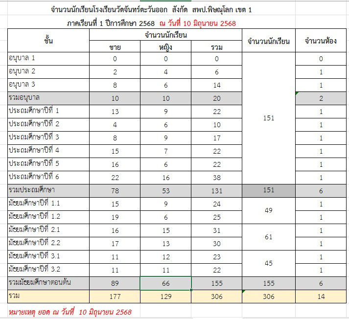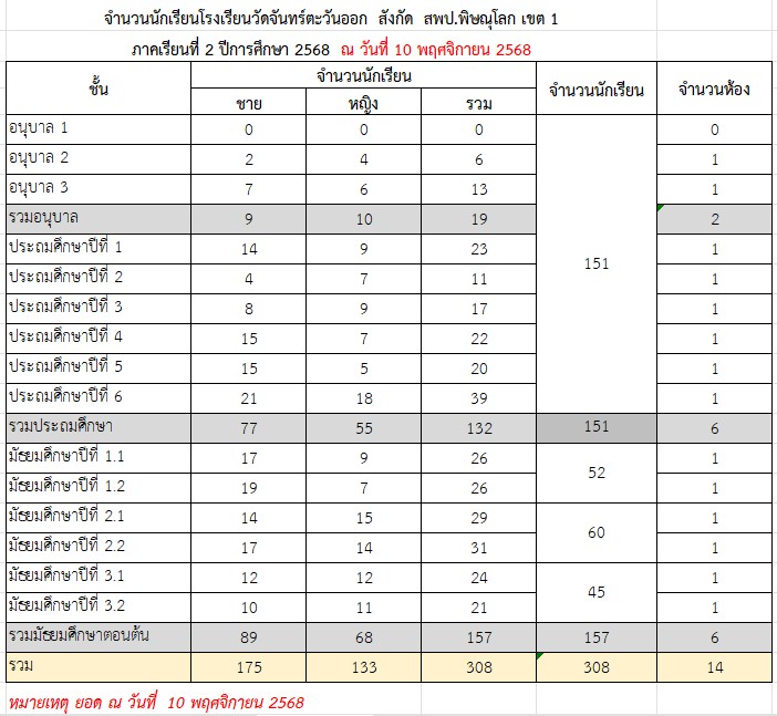 ข้อมูลนักเรียนภาคเรียนที่ 1 ปีการศึกษา 2568