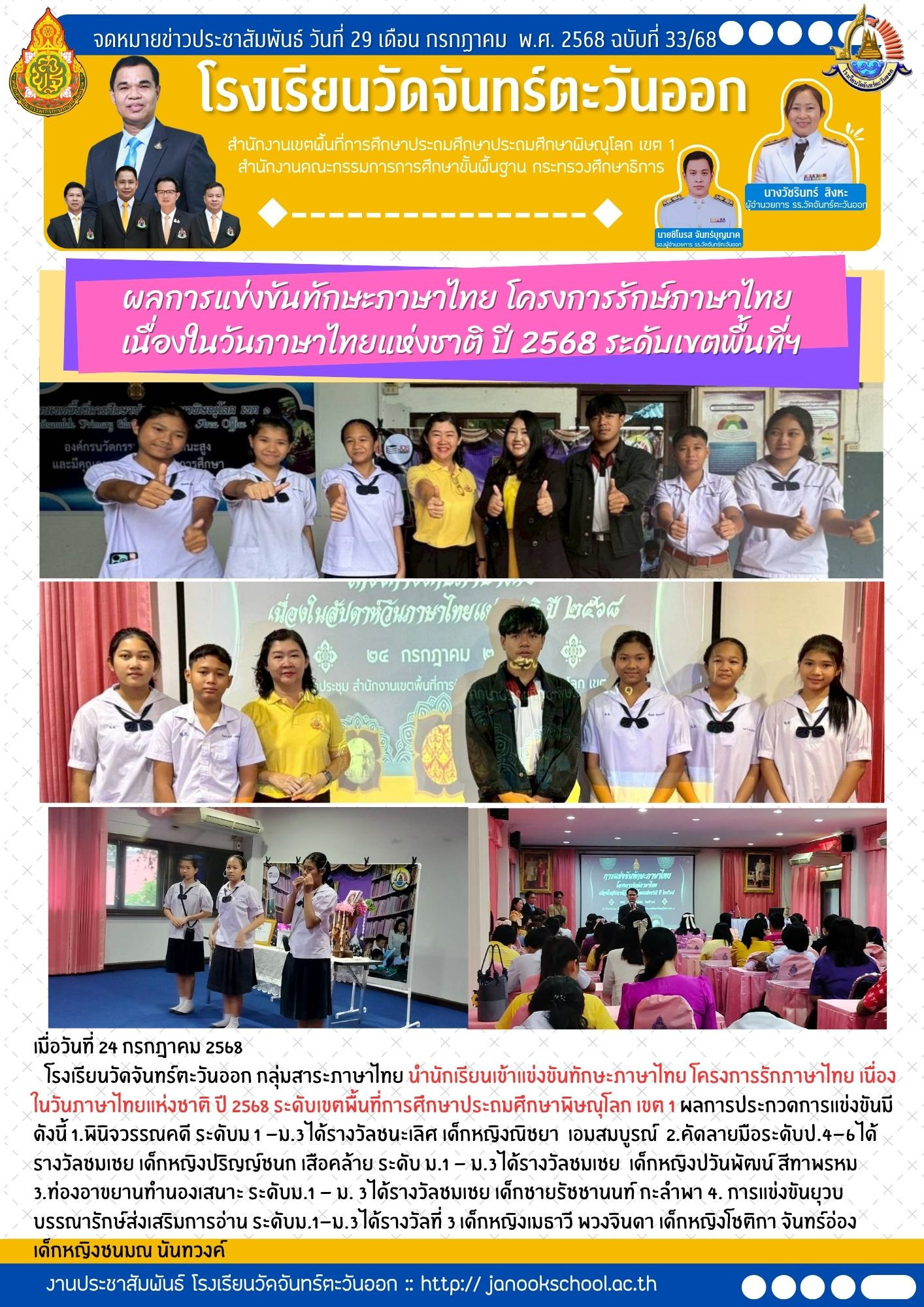 ผลการแข่งขันทักษะภาษาไทย โครงการรักษ์ภาษาไทย ระดับเขตพื้นที่การศึกษาประถมศึกษาพิษณุโลก เขต 1