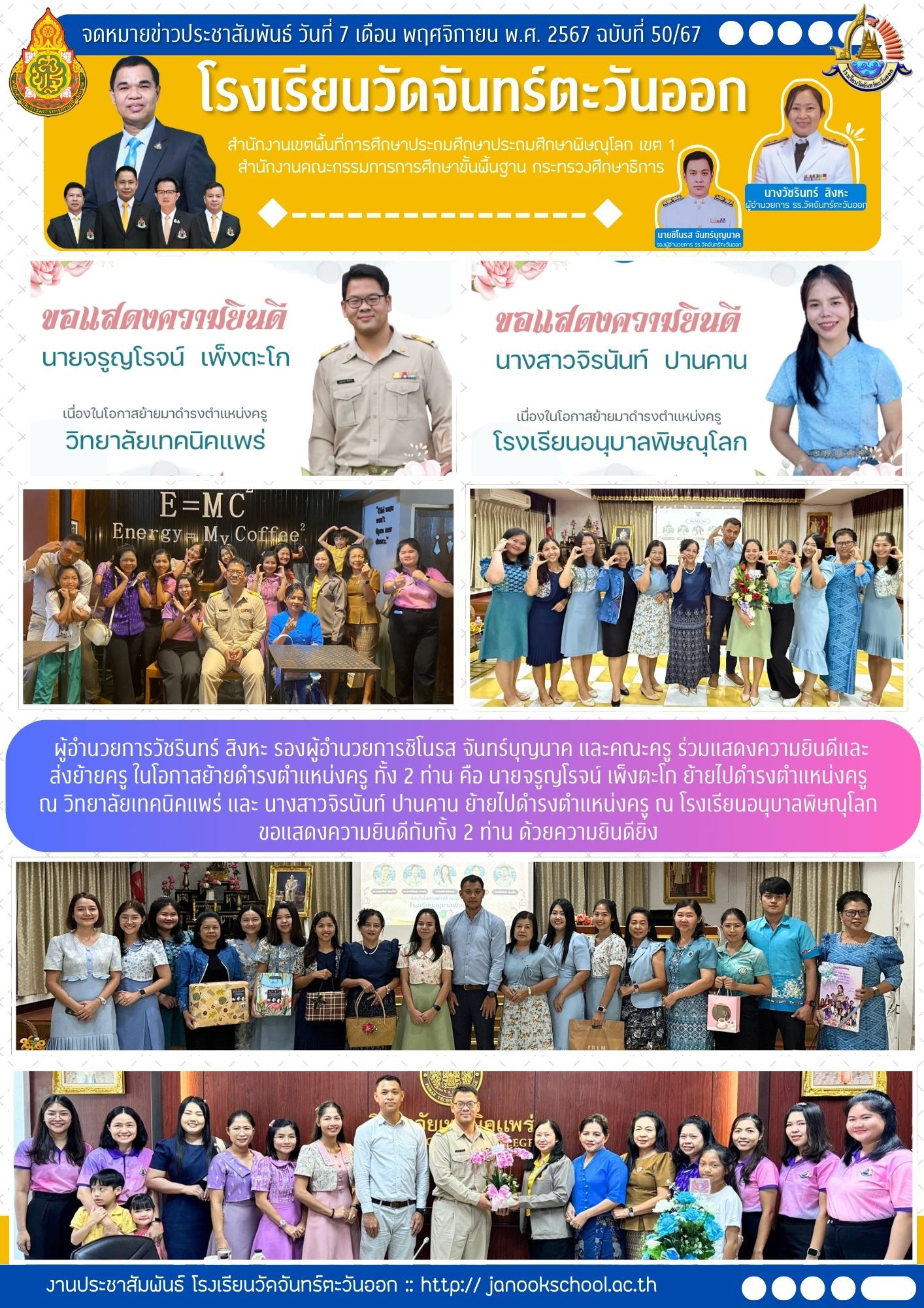 ขอแสดงความยินกับครูจรูญโรจน์ ครูจิรนันท์ ที่ได้ย้ายสถานศึกษาไปดำรงตำแหน่งครู