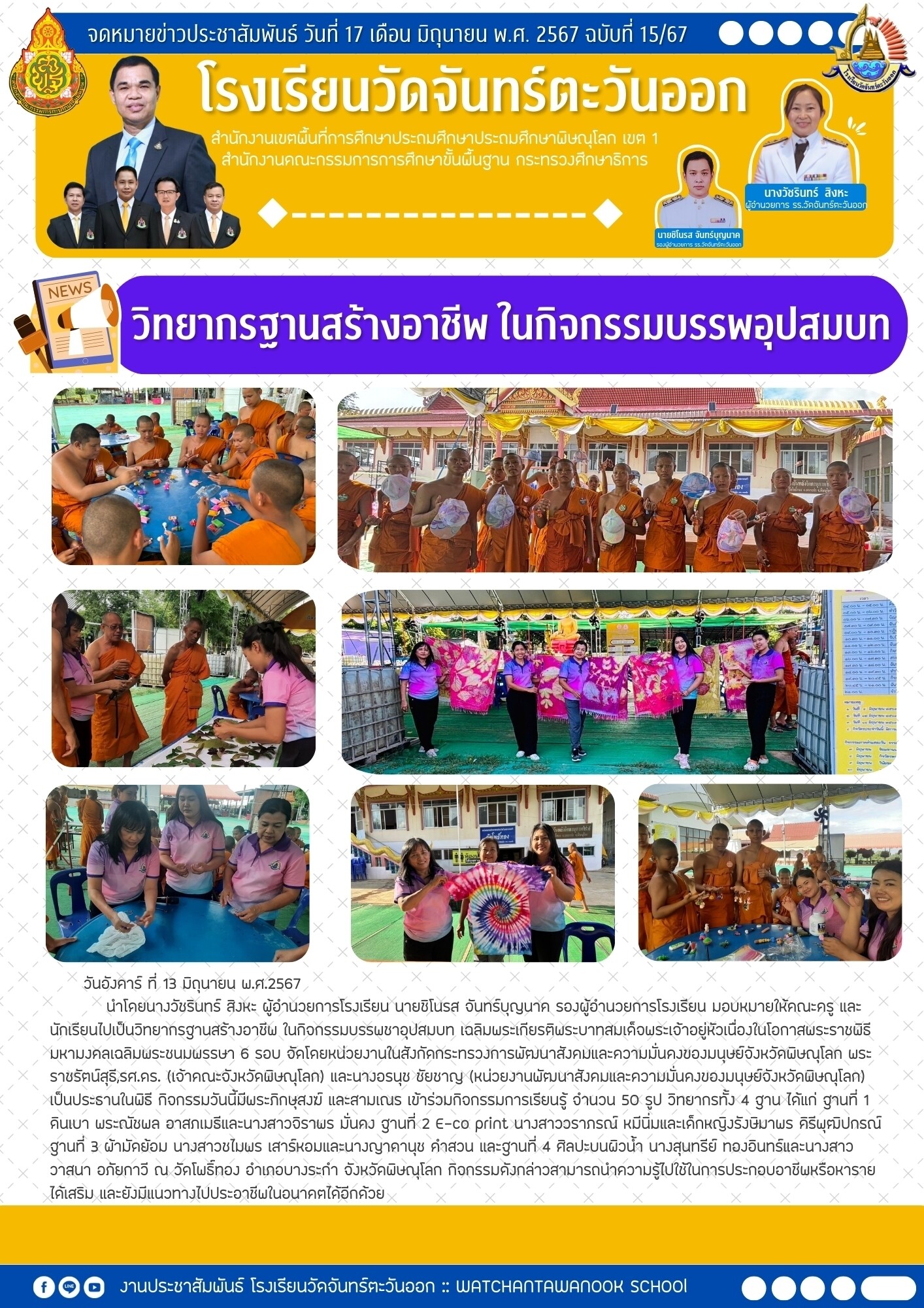 คณะครูเป็นวิทยากรฐานสร้างอาชีพ ในกิจกรรม"บรรพชาอุปสมบท"