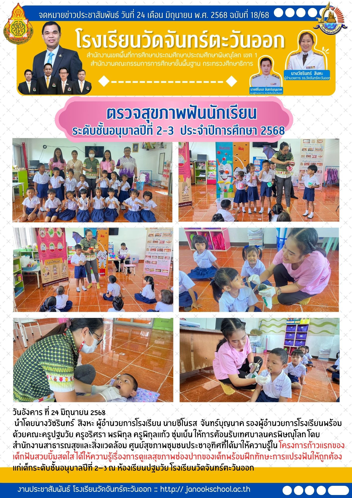 ตรวจสุขภาพฟันนักเรียนชั้นอนุบาล2-3โครงการก้าวแรกของเด็กฟันสวยยิ้มสดใส