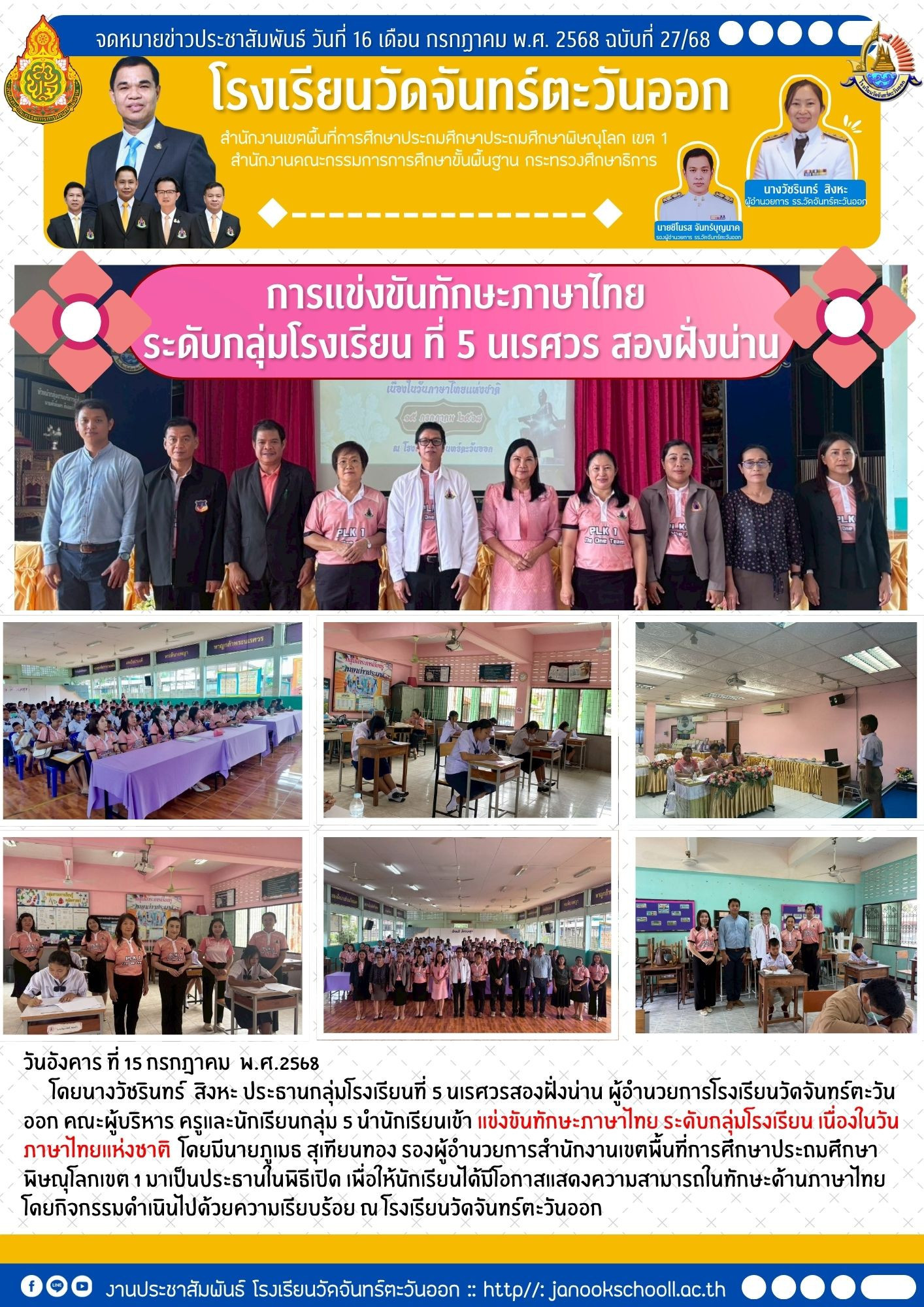 การแข่งขันทักษะภาษาไทย ระดับกลุ่มโรงเรียนที่ 5 นเศวรสองฝั่งน่าน