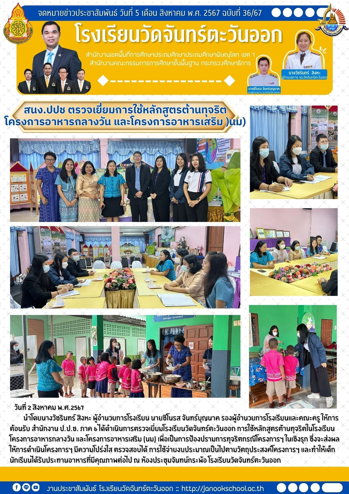 สำนักงานปปช.ตรวจเยี่ยมโรงเรียนการใช้หลักสูตรต้านทุจริต โครงการอาหารกลางวันและโครงการอาหารเสริม(นม)